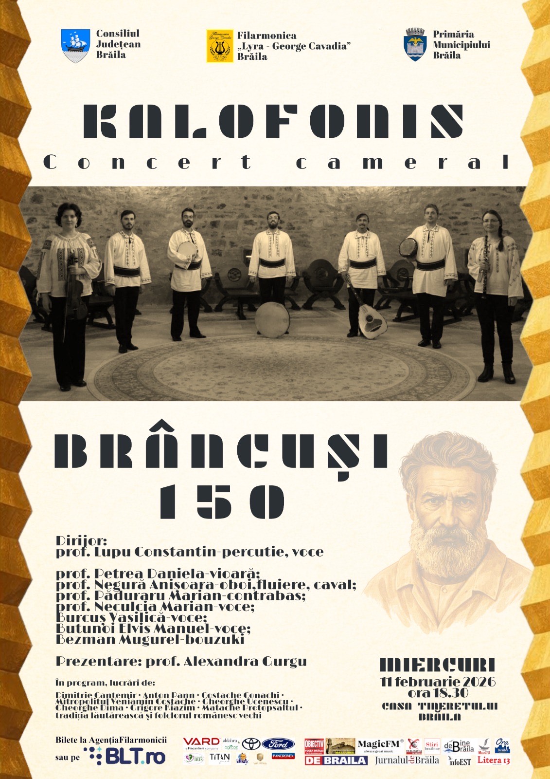 În data de 11 februarie 2026, orele 18,30, Casa Tineretului Brăila va găzdui concertul cameral „Kalofonis. Brâncuși 150”, organizat de Consiliul Județean Brăila, prin Filarmonica „Lyra – George Cavadia” Brăila, în colaborare cu Primăria Municipiului Brăila.