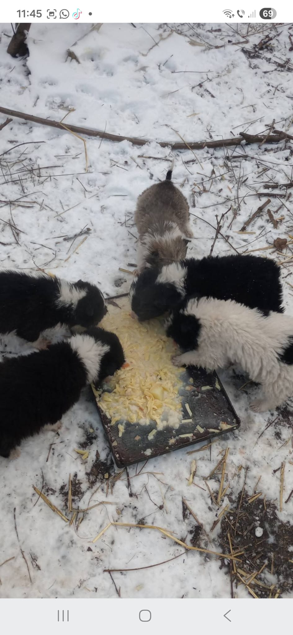 5 exemplare canine, varsta aprox. 8 saptamani, culoare negru si alb
